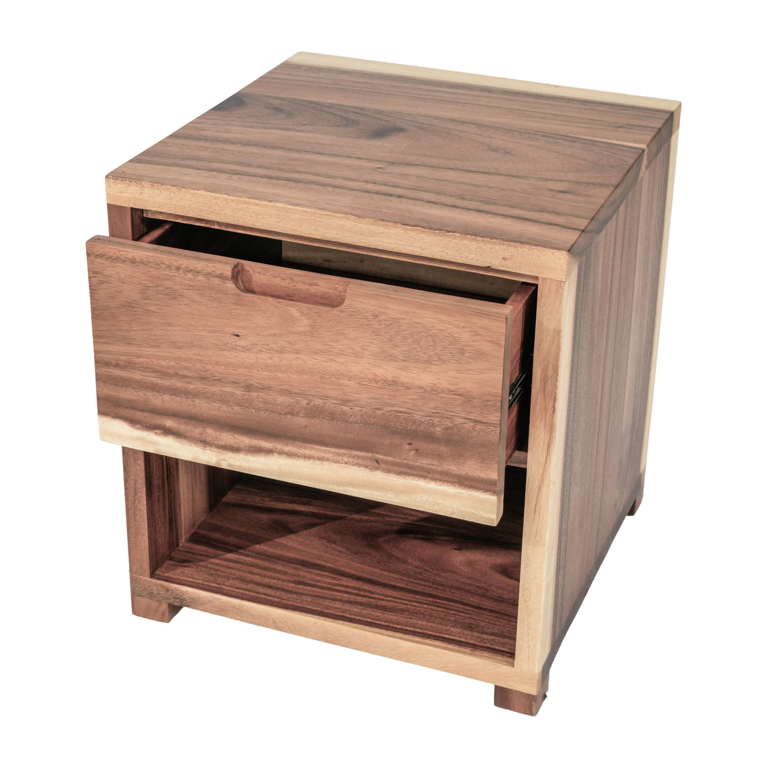 -Beautiful solid South American Walnut night stand, handmade -Size : 20″ X 20″ X 22″ -The inherent grain variation in each piece of wood makes it truly one of a kind. With its unique character, the wood naturally appears in a variety of shapes, sizes, and colors. These differences are part of the wood’s innate charm and do not affect its performance or durability in any way