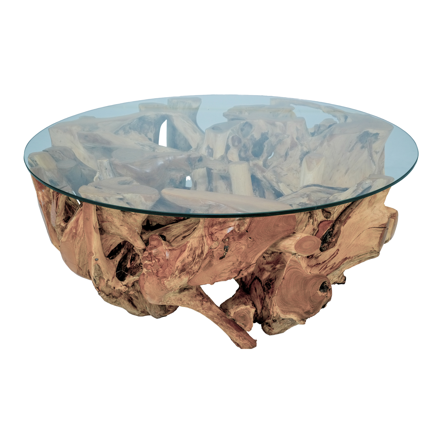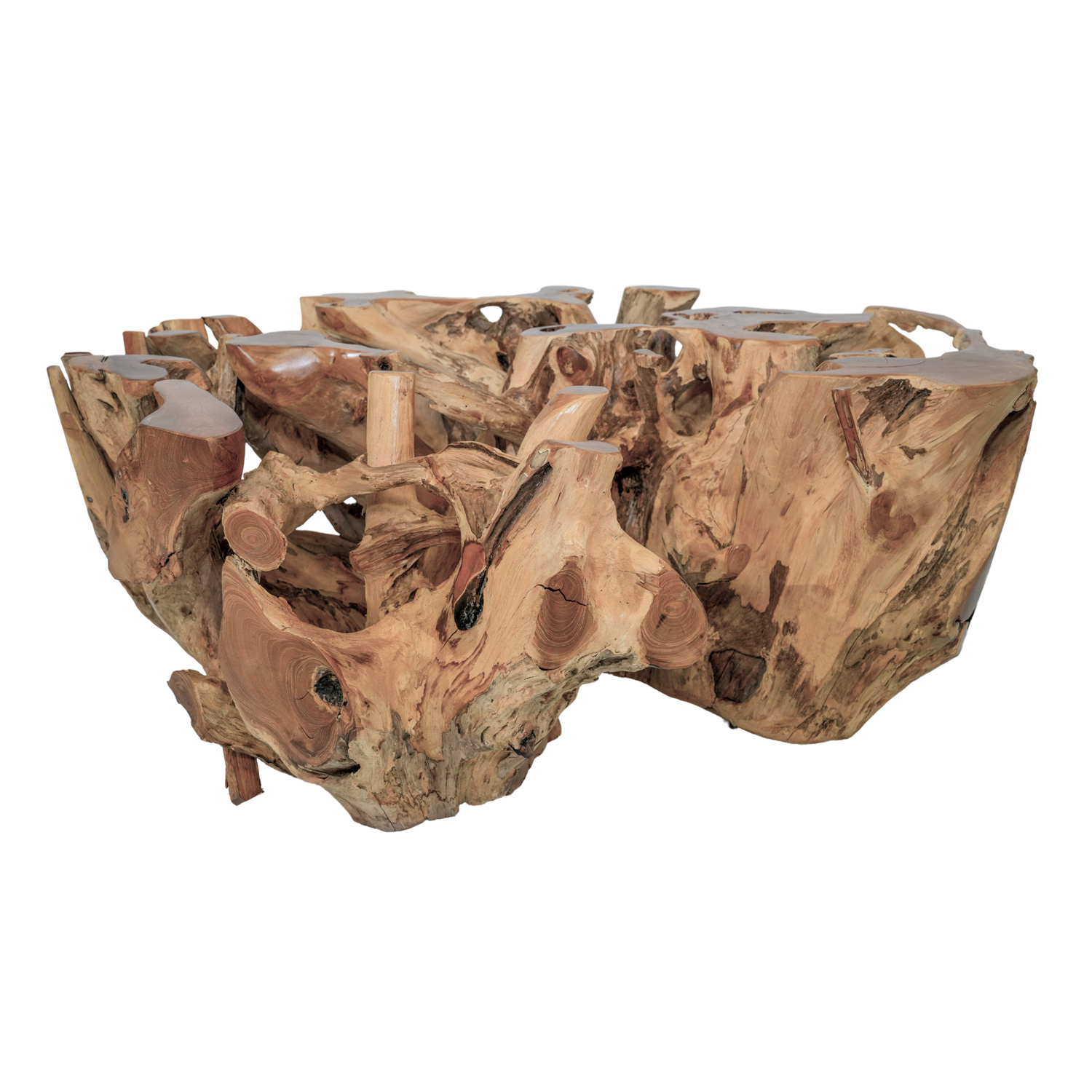 -Made from solid teak root, hand-made -Natural finish to showcase the wood’s true beauty