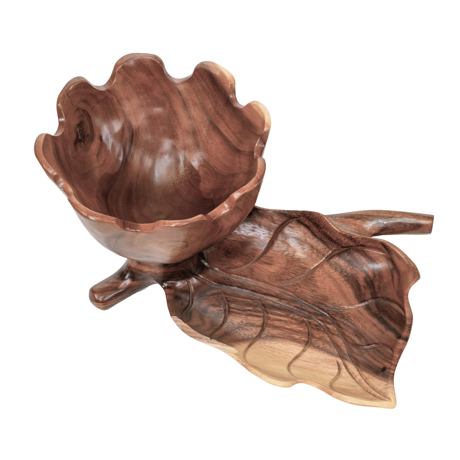 -Unique flower-shaped bowl paired with a leaf-shaped tray