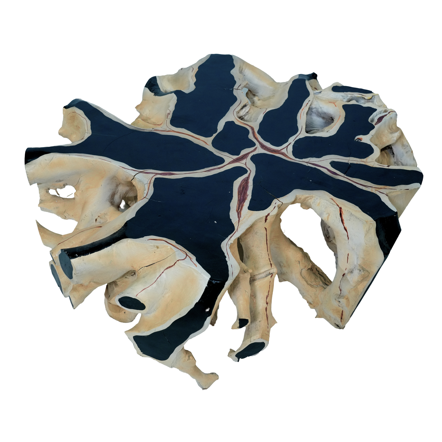 -Made from solid teak root, hand-made